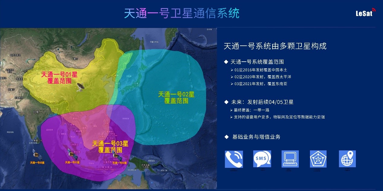 天通卫星电话利用地球同步轨道卫星,实现中国领土海域及东南亚区域内的通信覆盖。无论是海洋、山区、草原、戈壁还是沙漠,都能实现覆盖 。
