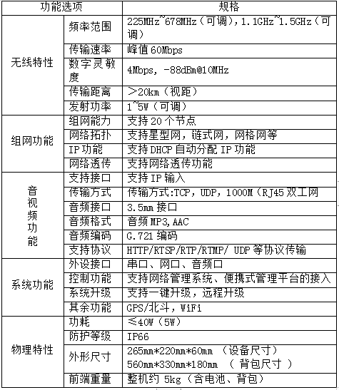 At present, the wireless communication system is the most important means of communication for the public security and armed police departments. However, the traditional wireless communication system is mainly point-to-point, with limited coverage, no mobile networking capabilities, and cannot meet the command coordination and multi-department coordination requirements of multiple people performing tasks in complex scenarios.